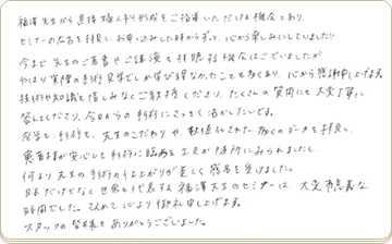 • 福澤先生から直接婦人料形成をご指導いただける機会とあり、セミナー広告を拝見し、お申込みした時からずっと心から楽しみにしていました!