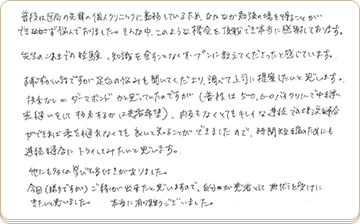 ご準備いただいたスタッフの方々の対応も素晴らしく、このようにクリニック作りを目指していきたいと思いました。