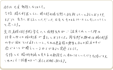 今回学ばせて頂いたことを実際に自分のクリニックでも取り入れていきたいと思っております。